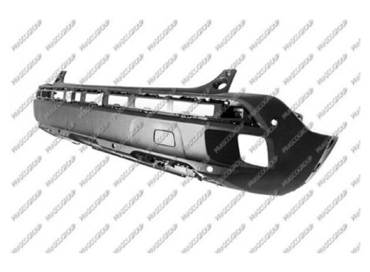 Noir, surface rugueuse avec trous pour capteurs de stationnement et système d'ouverture de hayon.