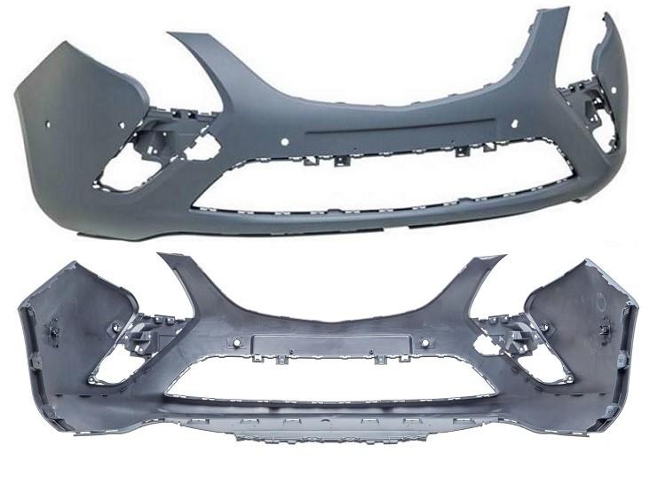 Apprêté, à peindre à la couleur du véhicule avec trous pour capteurs de stationement et trous pour capteurs d'assitance au stationnement. Livré nu sans grilles ni spoiler. Sauf modèles avec option lave-phares.