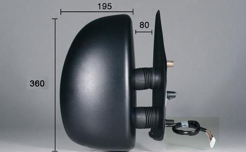 A partir du 07/99. Complet, avec coque noire et glace convexe. Réglage intérieur électrique, dégivrant. Bras court.