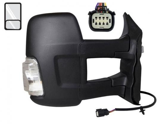 Complet, coque noire avec 1 glace convexe + 1 glace angle mort et feu clignotant orange 16 watts. Réglage intérieur électrique, dégivrant, rabattable manuellement avec connecteur 6 fiches. Bras long