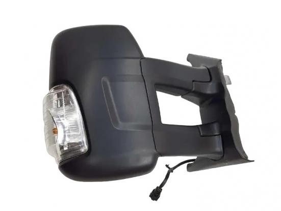 Complet, coque noire avec 1 glace convexe + 1 glace angle mort et feu clignotant orange 16 watts. Réglage intérieur électrique, dégivrant, rabattable manuellement avec connecteur 6 fiches. Bras long.
