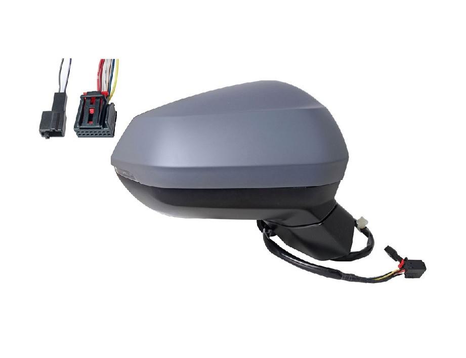 Complet, avec coque à peindre à la couleur du véhicule et glace convexe. Réglage intérieur électrique, dégivrant avec feu clignotant. Rabattable electriquement avec option memoire. Sauf option (side assist) assistance changement de voie. Connecteur 2 et 14 fiches.