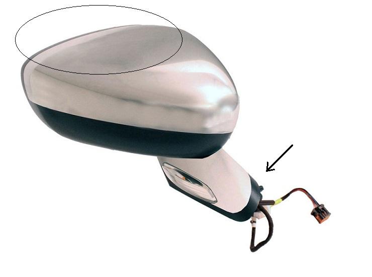 Complet, avec coque et embase chromée,cadre noir brillant, feu clignotant, feu de coutoisie (éclairage du sol) et glace convexe. Réglage intérieur électrique, dégivrant, rabattable electriquement avec mémoire, sonde température extérieure et connecteur 16 fiches.
