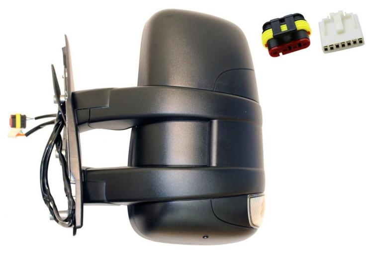 Complet et de couleur noire. Verre convexe. Thermique. Avec feu clignotant. Bras court. Pour une lampe W16W. Avec 2 connecteurs et 9 broches.