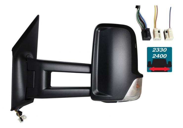 Complet, boîtier noir et verre convexe. Thermique. Avec feu clignotant. Bras extra long. Side assist. Connecteur à 6 broches et connecteur à 2 broches.