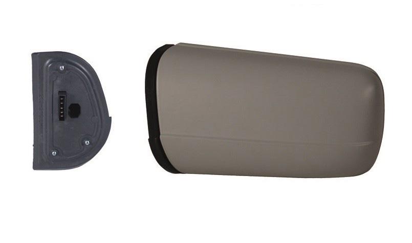 Jusqu'au 08/96. Complet, avec coque à peindre à la couleur du véhicule et glace plane, bleue. Réglage intérieur électrique, dégivrant, connecteur 5 broches, rabattable manuellement.