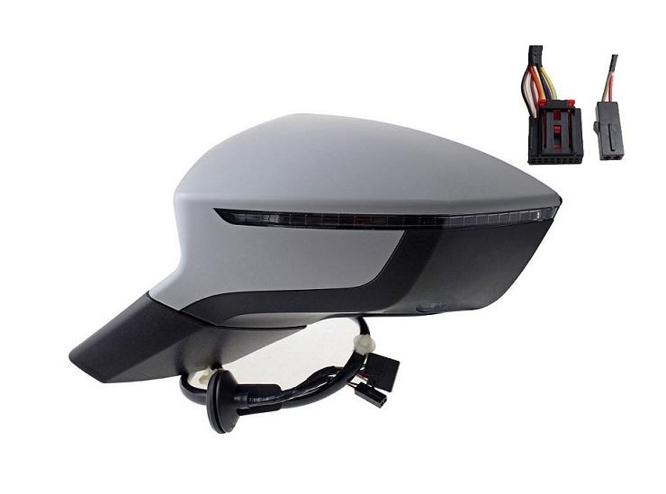 Complet, avec coque à peindre à la couleur du véhicule, feu clignotant, feu de courtoisie (éclairage du sol) et glace convexe. Réglage intérieur électrique, dégivrant, rabattable électriquement avec option BSD assist.(détecteur d'angle mort) équipé de 1 connecteur 9 fiches et 1 connecteur 2 fiches.