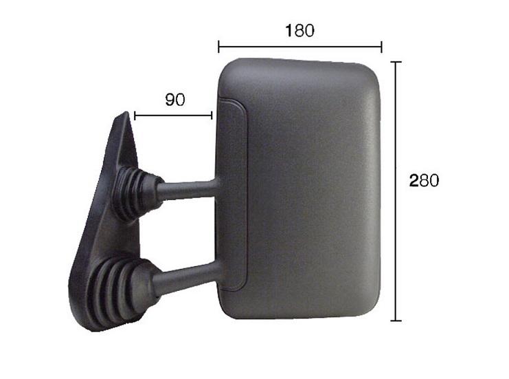 Complet avec boîtier noir et verre convexe. Réglage externe manuel. Bras court, dimensions : 90mmx280mmx180mm. Convient aux modèles à partir de 01/1996.