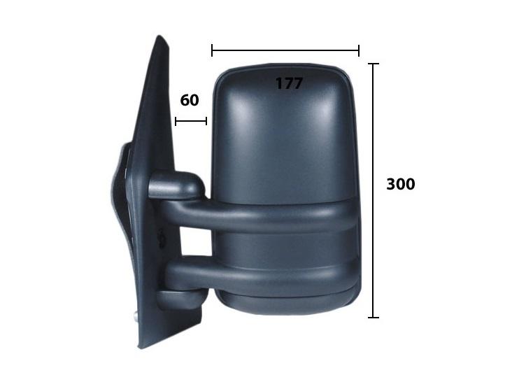 Complet avec coque noire et glace convexe (bi-miroirs). Réglage extérieur manuel. Bras court.