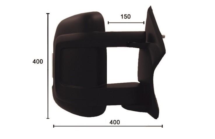 Complet avec coque noire, feu répétiteur orange (16w) et glace convexe (bi-miroirs). Réglage extérieur manuel. Bras moyen.